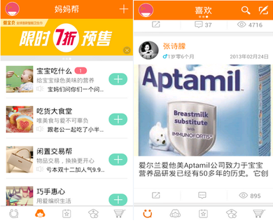 在一级入口“妈妈帮”中,宝妈们也可以根据自己的兴趣来加入不同的子论坛。不仅可以关注母婴的,更多的是对女性本身社交需求的拓展。李瑜在提到这块时表示,传统母婴网站做不下去很大原因是因为后期服务跟踪性差,而妈妈帮一开始就关注女性本身,情感,育儿,生活等多方面的服务,持久保持了用户黏性。
