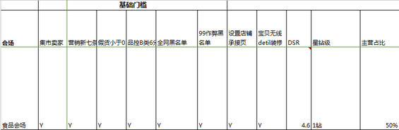 商家:DSR的分数要4.6以上,店铺要达到1钻以上,同时店铺内产品的食品占比要高于50%,符合这些要求,才算具备了基础门槛。