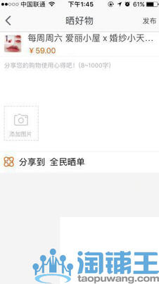 这里会出现两个选项,一个是晒好物—晒已买到的宝贝,一个是发话题—针对跟该圈子相关的某商品货某个话题进行讨论。