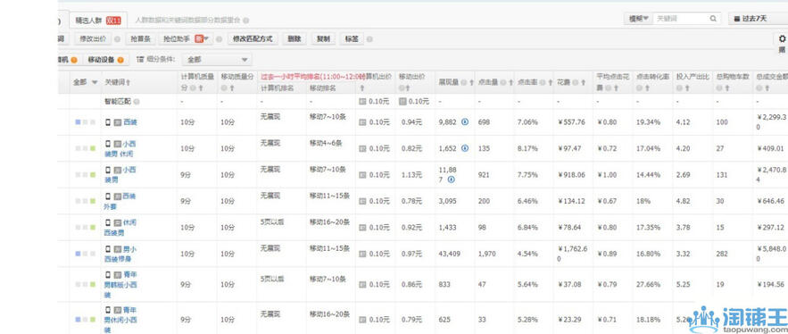 (13)展现量小,出价低,点击率高,转化率高。以ROI为重点来加价。