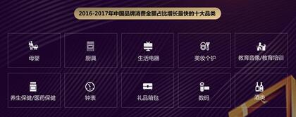 报告显示,2016年-2017年中国品牌的销售额增速比国外品牌高7%,销售量增速比国外品牌高1%,销售额增速比销量更高,说明2016年-2017年中国品牌商品的平均单价得到提升,中国品牌持续推进着高品质之路。在母婴、文化、家居、健康类等生活品质相关的类别上,中国品牌销售规模增长也十分显著,说明中国品牌的品质正在受到越来越多消费者的认可。