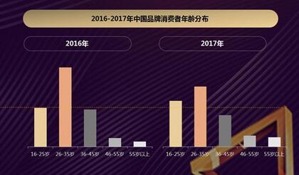 与全站消费者相比,中国品牌消费者中16-25岁青年群体占比要高出全站4%,同时2017年16-25岁青年群体的消费占比2016年要高出6%。青年代表着消费市场的未来,中国品牌正越来越受到年轻用户的青睐,可持续成长空间广阔。另外,中老年消费者群体的增长也较快,说明中老年消费者越来越接受电商消费方式,中国品牌各年龄段消费者分布也更加均衡。
