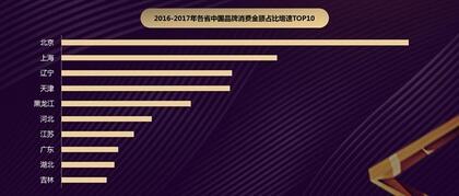 从中国品牌的消费占比增速来看,经济发达地区消费者越来越认可中国品牌。2016-2017年间,北京、上海、辽宁、天津等中国品牌市场占有率较低的省市销售占比增速相对较高,这说明中国品牌在全国各省市消费渐趋均衡。另一方面,这些省市中国品牌市场规模的扩大主要得益于在互联网品牌、中国设计/中国智造品牌消费的增长。而西 藏、青海、宁夏、海南和甘肃省在2016-2017年间消费金额增速低于全国平均速度,说明在消费升级的过程中,普遍存在从追求高性价比品牌,到国际大牌,再到选择真正适合自己的品牌这一路径,目前一些欠发达省份还处于前期阶段。