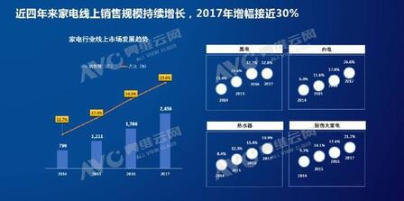 随着互联网的发展,线上市场成为家电行业越来越重要的销售渠道,甚至对厨房家电和一些新兴的家电产品来说已经成为了他们销售的主战场。过去四年来家电的线上销售规模保持着持续的增长,据奥维云网(AVC)对40多种家电品类的监测数据显示,2017年家电线上销售额增幅达29.6%。即便近几年行业在主张实体渠道的回归、讨论互联网渠道的理性发展,但也丝毫不能影响线上市场正向发展的大趋势。