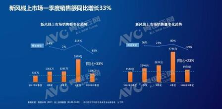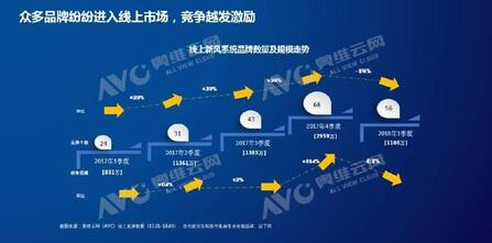 具体来看过去新风线上市场的表现如何,整个2017年新风系统在线上市场呈现出了一个非常快速的发展态势。在2017年第四季度线上规模达到了一个顶峰,整体销售额接近3000万。随着销售旺季的结束,同时受到雾霾环境改善的影响,2018年第一季度线上的销售规模有大幅的下滑。但与2017年同期相比线上销售额增幅达33%。对于一个普通的家电品类来说这样的增长速度可以说非常快了,但由于前期行家对新风市场的期望值过高,加之从2017年第二季度开始众多品牌纷纷进入这个行业,导致几年一季度销售规模大幅下跌后,各品牌在线上的日子变的极其难过。