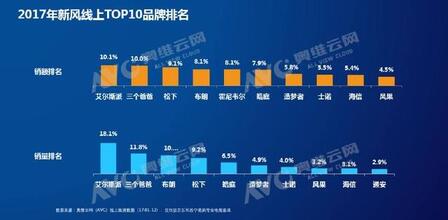 2017年1月至12月 京东、苏宁两大电商平台统计的数据显示,埃尔斯派无论是销售量还是销售额都排在第一位,尤其是销售量占比达到18%,成绩比较抢眼的,与第二名拉开了很大的距离。从销售额来看top10品牌之间并没拉开太大的距离,每个月的品牌排名变化也很大。也有部分品牌虽然在线上布局较晚,但后来者居上,也进入到了钱10的行列。这也说明了目前新风线上市场的一个现状,品牌集中度不高,没有形成行业壁垒,每个企业都有机会参与到线上的市场竞争当中去,而且只要线上的产品布局完善,品牌推广到位,在短时间内提高份额是相对容易的。
