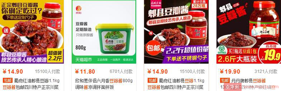 例如豆瓣酱,属于快消品,单价低竞争却不小,特点是复购率高,类似的还有纸巾、垃圾袋等。