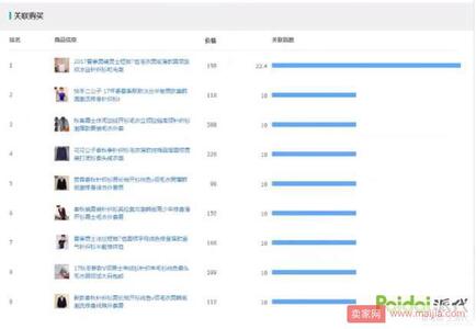 接下来我们看一下关联购买,就是跟竞争对手这个商品有关联的商品,可能浏览过这个商品,收藏过这个商品比对过,然后买了其他家的商品。我们可以点击进去分析下为什么顾客会买这个商品,是价格比较低还是款式问题。然后进行数据分析,我们的商品跟对方商品相比是否有可比性,你到底能不能干过他,不然的话,你即使用了他的词也没用。在商品里面,你看一下这些商品是否能够跟你现在的商品包括成交、评价,等各项指标匹配,如果能大胆的去盯紧干掉他。