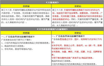 2017年11月24日,天猫发布《不当评价规则变更公示通知》。通知显示,天猫将变更不正当评价规则,对含“辱骂”“泄露信息”“微信号”等评价进行删除或屏蔽。此次变更将于2017年12月1日正式生效。