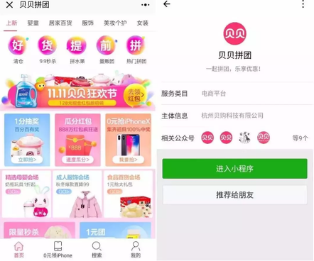 2017年贝贝开始重点布局社交电商。一方面,贝店快速发展。另一方面,发力小程序和公众号,组建了“App+小程序+M站”的流量矩阵。