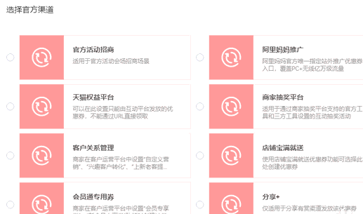 【官方渠道】点击之后你可以看到各种渠道,其实你不用设置的,在相应的推广渠道上,需要使用的时候会自动跳转过来,要求你进行设置,否则你设置了也没用,而且万一链接泄漏,将是不可控的,另外呢不设置活动,这些优惠券正常情况下是不会生效的。