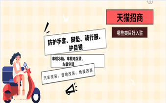 随着二轮车的智能化新赛道,防护手套、脚垫、骑行服、护目镜,骑行专用蓝牙耳机,车载冰箱、车载电饭煲、车载空调等汽车周边产品,汽车改装、音响改装、色膜改装等智能交互产品等品类近期入驻天猫成功率高!