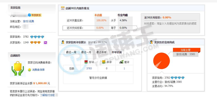 卖家描述: 四钻游戏专营,个人店铺,动态清零,协议变更,淘信用550,体检中心无违规扣分,历史无虚假售假,好评99,主营占比94,看上联系业务员