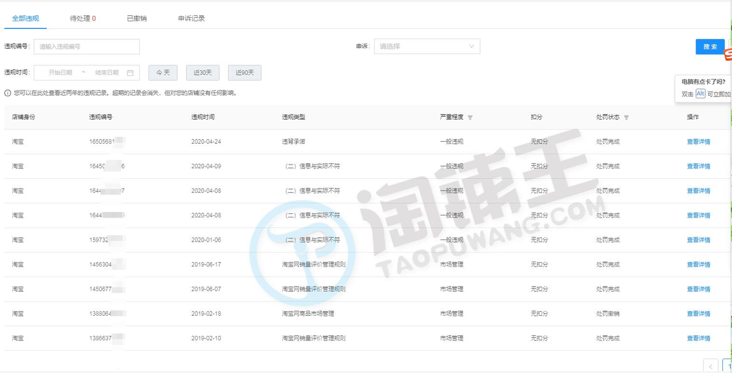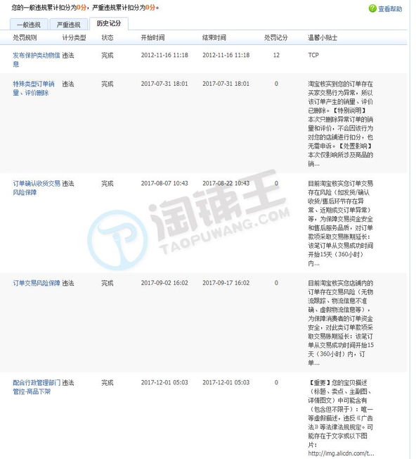 一般违规0分