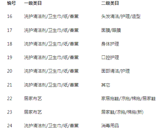 一级类目:居家日用,收纳整理,厨房/烹饪用具,洗护清洁剂/卫生巾/纸/香薰,家庭/个人清洁工具,餐饮具,节庆用品/礼品,居家布艺