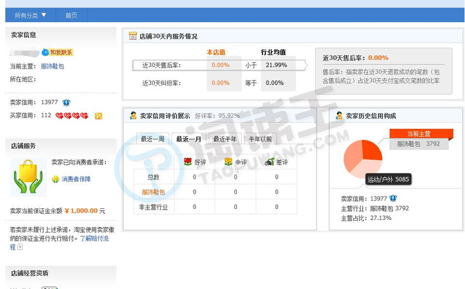 卖家描述: 一直是做服装的,3年前开始没做,一直闲置的, 现在想卖掉。6年服饰老店标志,1蓝冠,诚心要的老板可小刀,无售假记录,协议变更激活时间不符合,支持升级企业店出售,不带支付宝出