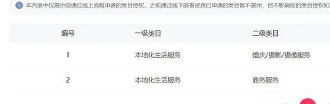 主营类目:服务大类
