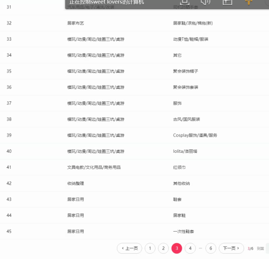 一级类目:女装/女士精品,服饰配件/皮带/帽子/围巾,男装,女士内衣/男士内衣/家居服,五金/工具,童装/婴儿装/亲子装