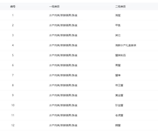 一级类目:水产肉类/蛋类/新鲜果蔬/冰淇淋