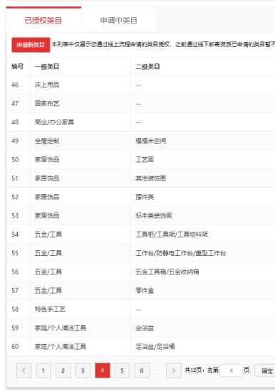 一级类目:厨房/烹饪用具,餐饮具,节庆用品/礼品,居家日用,住宅家具,商业/办公家具,特色手工艺,家装主材,全屋定制,五金/工具,基础建材