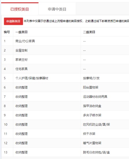 一级类目:基础建材,五金/工具,家装主材,商业/办公家具,住宅家具,家装灯饰光源
