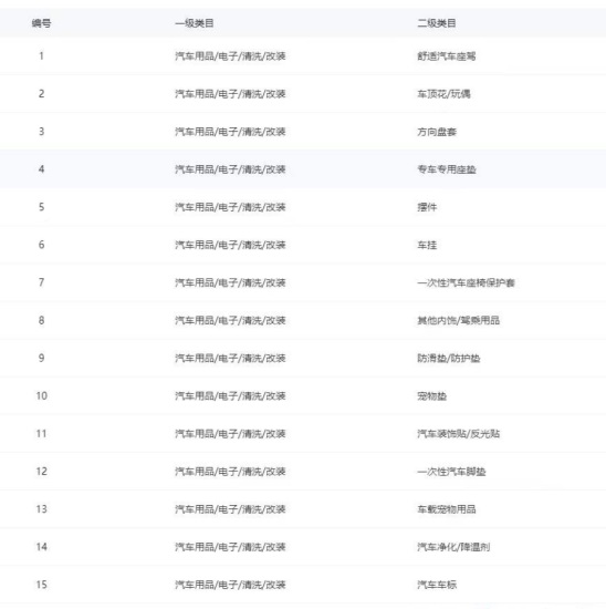 一级类目:汽车用品/电子/清洗/改装