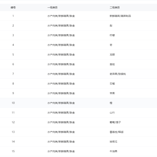 一级类目:水产肉类/蛋类/新鲜果蔬/冰淇淋