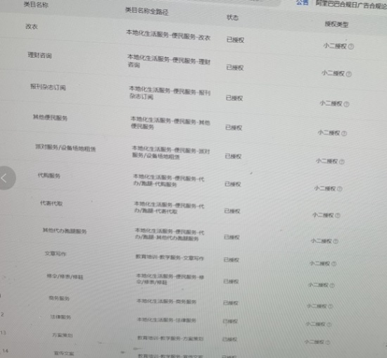 主营类目:服务大类