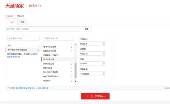 一级类目:移动/联通/电信充值中心,手机号码/套餐/增值业务