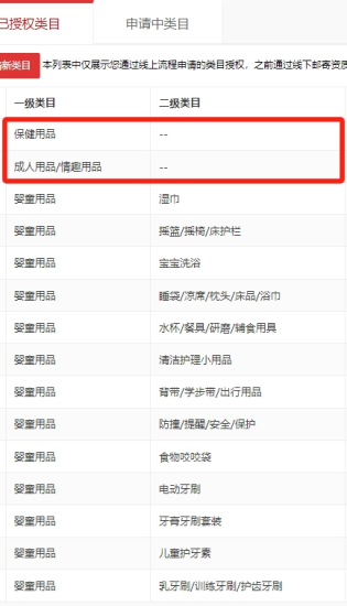 一级类目:彩妆/香水/美发/工具,美发护发/假发,美容护肤/美体/精油,婴童用品,成人用品/情趣用品