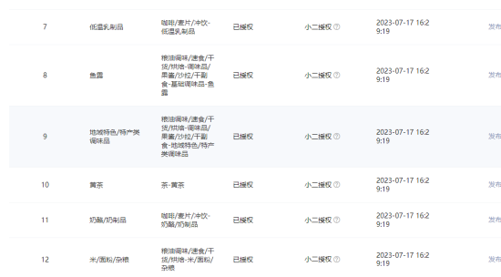 一级类目:粮油米面/南北干货/调味品,茶,咖啡/麦片/冲饮,零食/坚果/特产,水产肉类/蛋类/新鲜果蔬/冰淇淋,传统滋补营养品