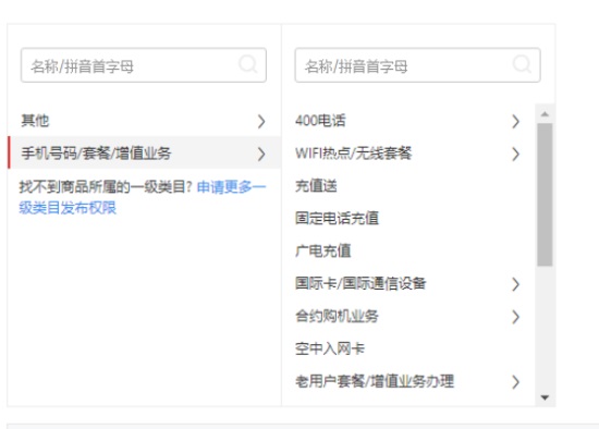 一级类目:手机号码/套餐/增值业务
