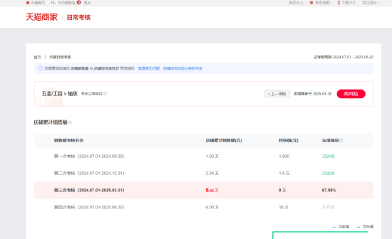 营业额指标: 未达成