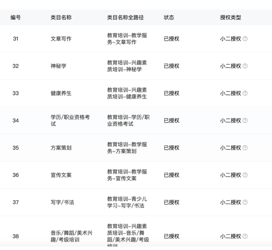 主营类目:服务大类