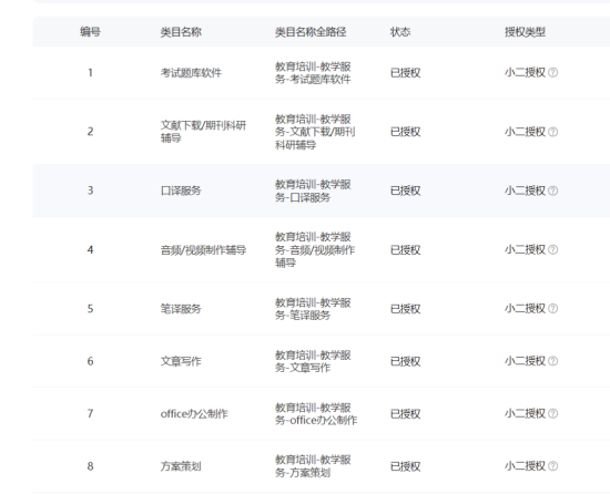 主营类目:服务大类