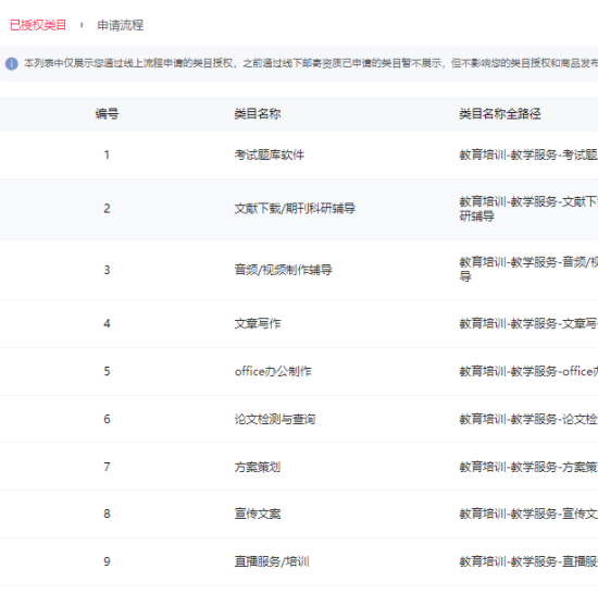 华南地区服务大类天猫旗舰店出售/转让,教学服务类目不全开