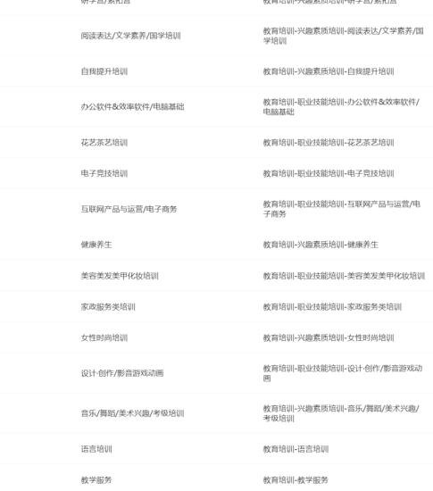 主营类目:服务大类